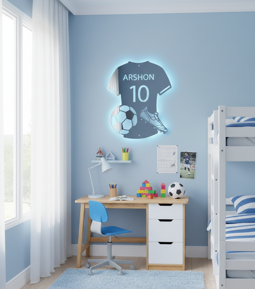 Regalato a mio nipote per il suo compleanno. Quando ha visto il suo nome e il numero 10 illuminati è impazzito di gioia.