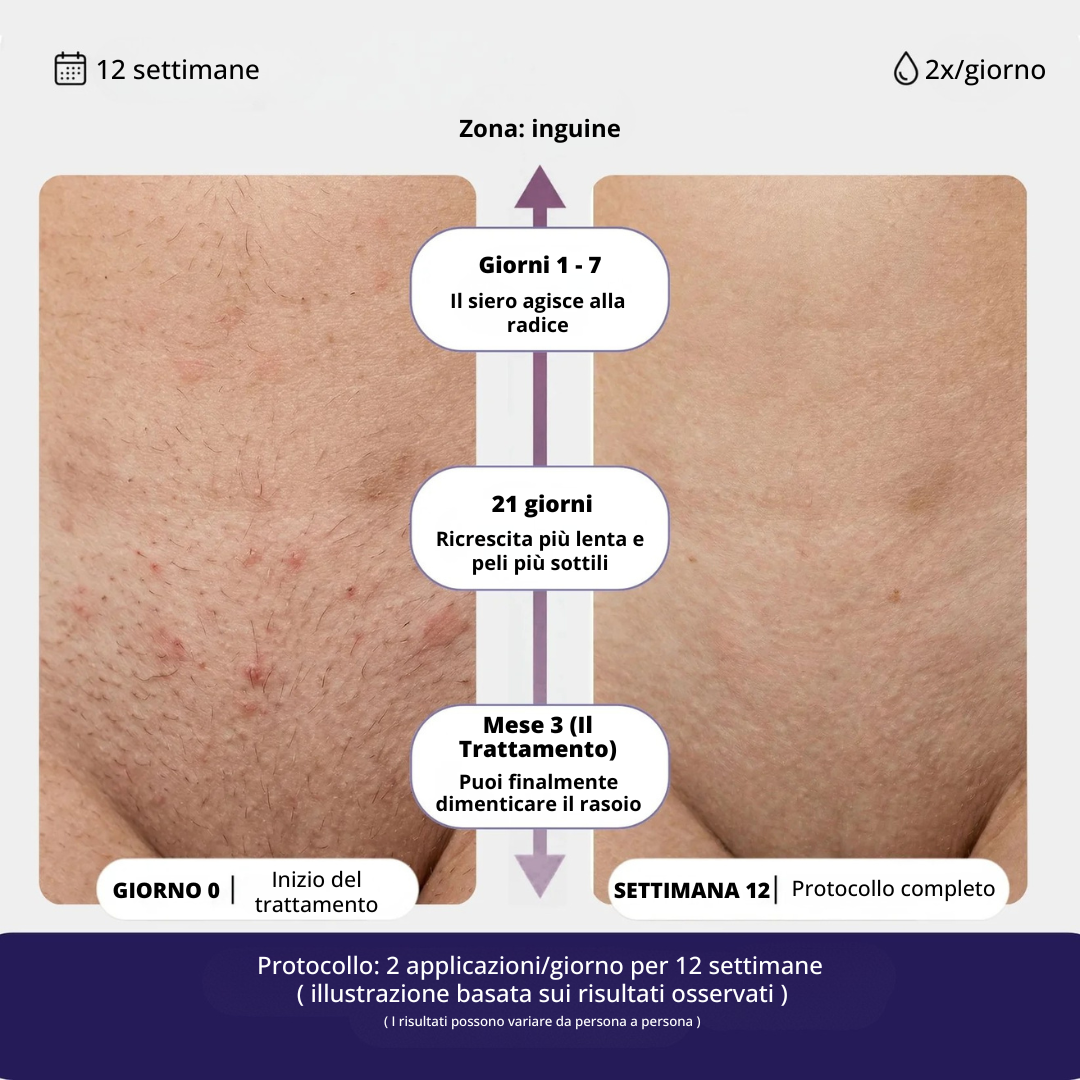 Quando applichi il siero dopo la depilazione, il principio attivo penetra nel follicolo pilifero (la radice del pelo) e agisce direttamente alla fonte.